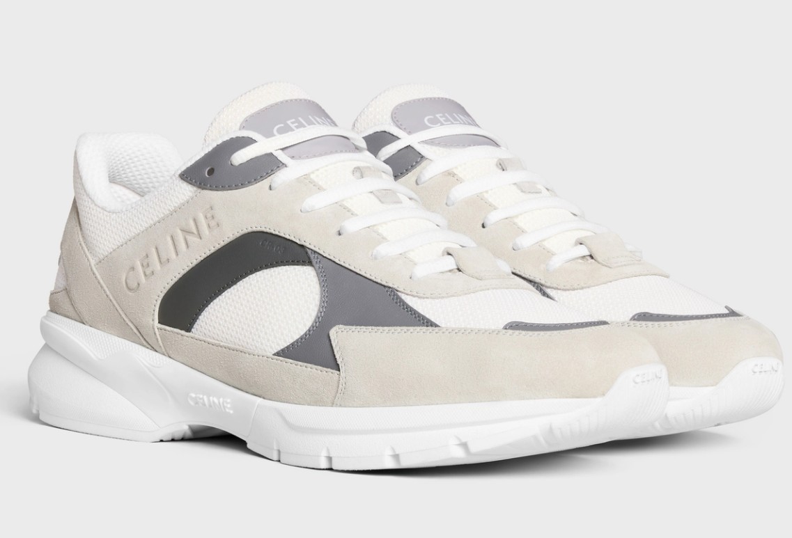 90年代後半から2000年代前半にかけてティーンエイジャーが愛用していたランニングシューズにインスパイアされた「CELINE ランナー」シリーズの新作スニーカー、CR-03。2024年サマーコレクションでデビューしたCR-01とCR-02に続く第三弾となるこのモデルは、カーフスキン、スエード、メッシュ素材を融合させたテクニカルなデザインが特徴です。CELINEのロゴがエンボス加工で施されており、アスレチックな雰囲気を保ちながらも、グラフィカルで洗練された外観を持っています。