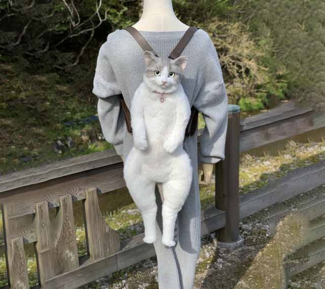 えっ、猫ちゃんが背負われてる…!? 超リアルな「猫リュック偽物 」に目が釘付けに…