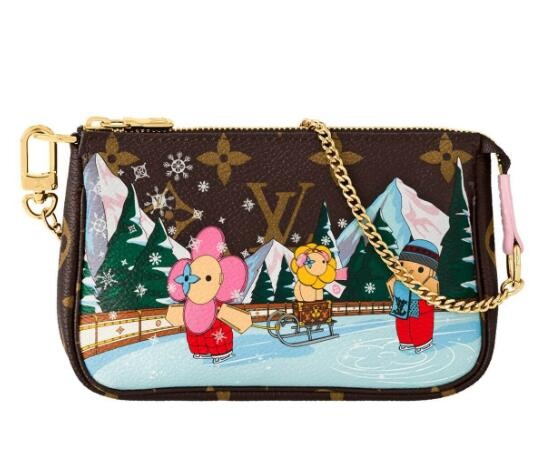 コレクションのメインとなるのは、アイススケートを楽しむ「ヴィヴィエンヌ」と仲間たちのデザイン。モノグラム・キャンバスをベースに、カラフルなスケート靴や、雪の結晶が舞う空など、冬の風景が描かれている。