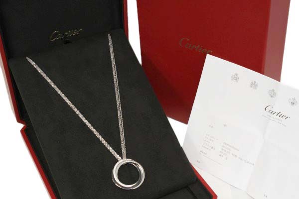 カルティエ Pt950/K18WG/ブラックセラミック ダイヤ トリニティ ブラック&ホワイトペンダントネックレス パヴェダイヤ(N3028100)