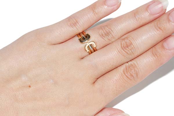 3カラーがとてもオシャレなデザインの2cリング。シーンを選ばないシンプルなデザインです。