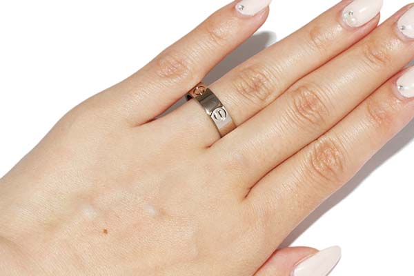 カルティエ不動の人気商品、ラブリングです。ビスの刻印がぐるりと一周施された印象的なデザインです。