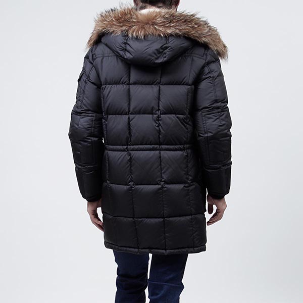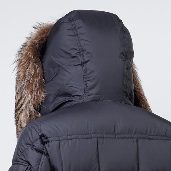 ベンチコートを改良したようなスポーティな姿と、ボリューミーなコヨーテファーにラグジュアリーなモードが宿ったセミロングスタイル「AFFTON」。アウターシェルはポリエステルファブリックを使用し、軽量性・撥水性・保温性・防汚性といった高機能を実現。ライニングにはポリアミドの光沢ファブリックを採用して、中綿との相乗効果を狙っています。