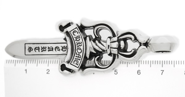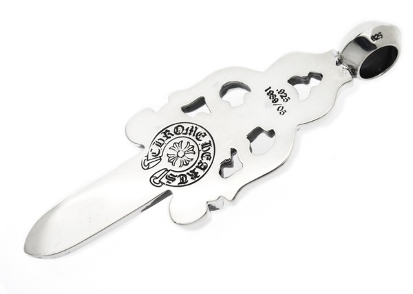 クロムハーツ ラージ ダガーペンダント トップのみ ネックレスchp48ブランド:クロムハーツ 新品商品番号:chp48商品詳細 材質Silver925 サイズ 高さ76mm(バチカン除く65mm)・幅26mm・厚み6mm 付属品 ポーチ商品説明クロムハーツを代表するモチーフであるダガーのラージサイズとして2008年に発表されました。ダブルダガーと違い背面は鏡面でフラットな形状になっていますが、それでも十分な重量感とボリュームとなっています。 各部の彫り込みは深くしっかりとデザインされており、着用時のシルエットは遠くからでもはっきりとダガーと分かるほど。