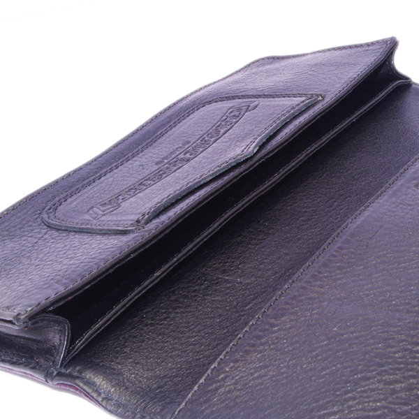 ロングセラーのクロムハーツ札入れに、新色シャイニーパープルが登場。艶やかな紫が非常に美しい、セクシーな長財布です。
