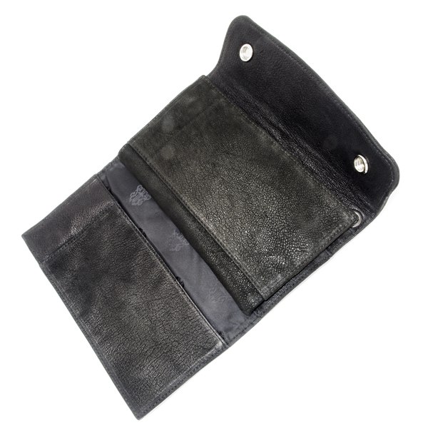 収納力はトップクラスでありながら、無駄なデザインを排除し大人なシンプルウォレットとなっております。表皮を起毛させる加工が施されており、通常ヘビーレザーよりマットな質感で手によく馴染みます。