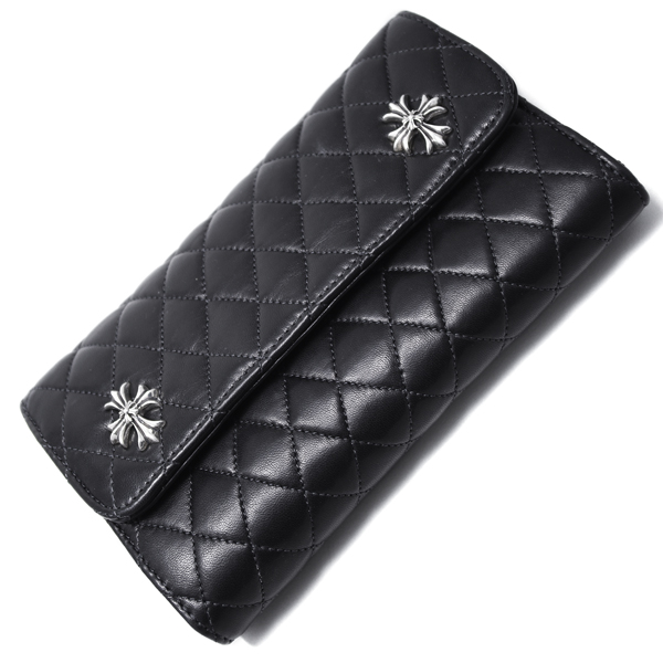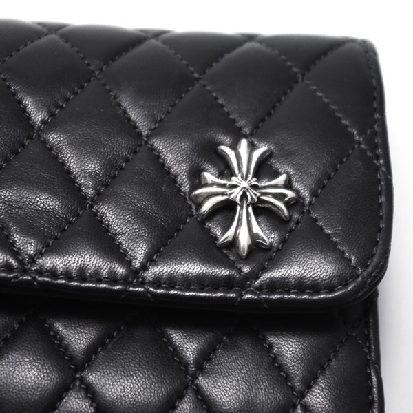 クロムハーツ財布コピー ウェーブ#4ウォレット/キルトブラックレザー・クロスボタン 財布cho18