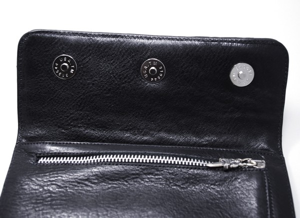 付属品インボイス写し・当店発行の販売証明書仕様・キルティング加工・ステッチ:ホワイト&ブラック・ジップコインエリア・IDスロット・札入れ×2・カードスロット×6・ダガージップコインエリア・ペンホルダー・CHプラスクロススナップボタン×2(マグネット)