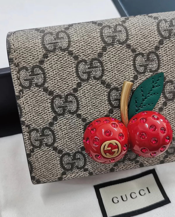 グッチ さくらんぼ 偽物 かわいいチェリー GGスプリーム/折りたたみ財布 476050 K9GXT 8694