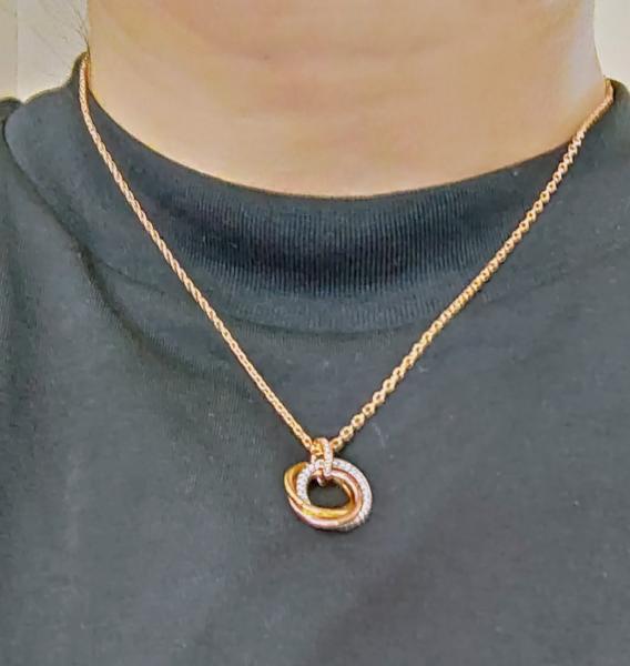 トリニティ ネックレス、ホワイトゴールド750/1000、ピンクゴールド750/1000、イエローゴールド750/1000、ピンクゴールド750/1000製チェーン。