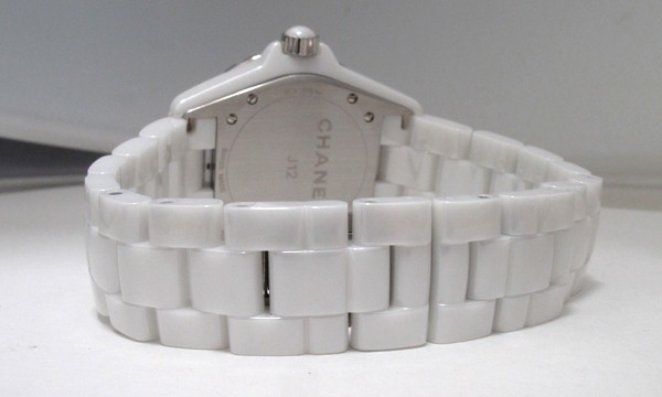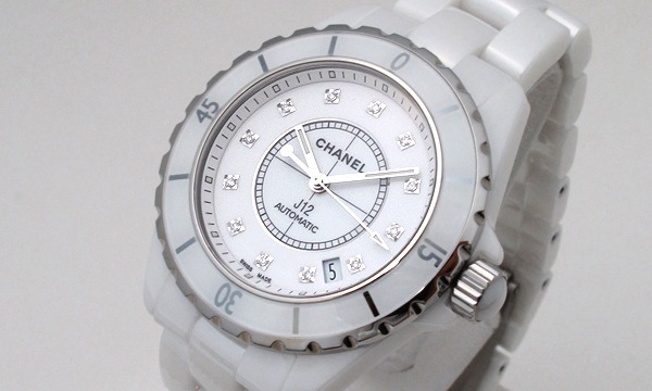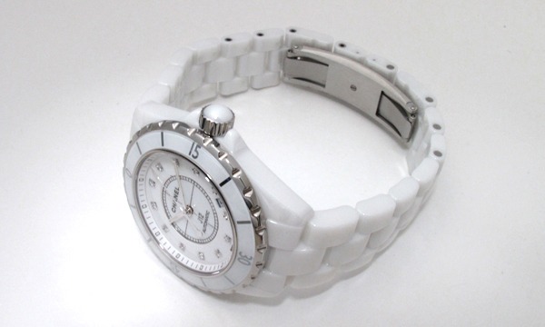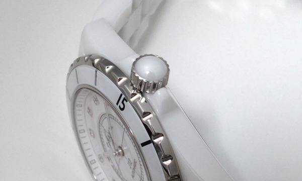 人気のJ12!!ダイアルのインデックスにセットされた12粒のダイヤがさりげない豪華さを、ホワイトセラミックが爽やかな印象着けてくれます。