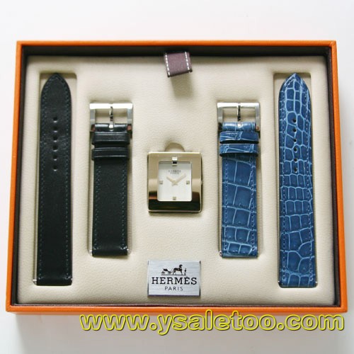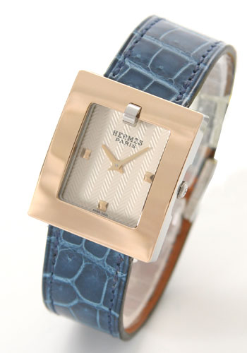 エルメスエルメスコピー ベルトウォッチ クロコレザー ブルー/GPアイボリー レディース 替ベルト付 【ブラックレザー】 BE1.220.470/G-CRY