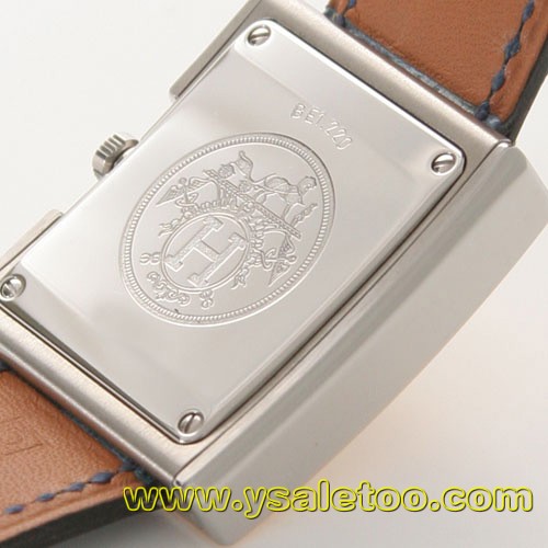裏蓋にはエルメスのロゴマークとシリアルナンバーが刻印されています。4つのビスがワンポイントになっています。