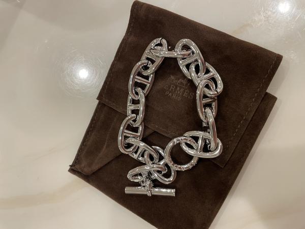 傷がついたりくすみが出ますのも、使っていただくうちに出る自然な味です。エルメスのシルバーブレスレットの最高傑作とも呼ばれ、世界的に再注目されており、現在非常に入手困難でございます。