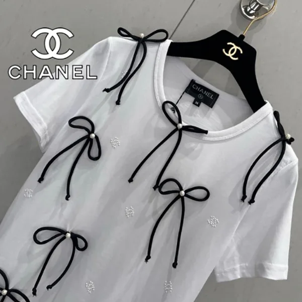 《リボンがかわいい♪》シャネル Tシャツ コピー パール CCロゴ ホワイト¥15150円 -
