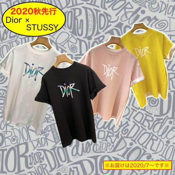 2020秋 ディオール × STUSSY ディオール Tシャツ コピー コラボ シルクTシャツ581OB3¥14000円