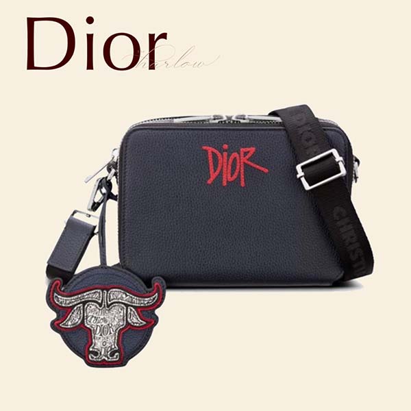 ディオール Stussy コラボ ポーチ ショルダーバッグ CD ロゴ 紺 新 男 2ESBC119GDS_H00E¥26500円 -