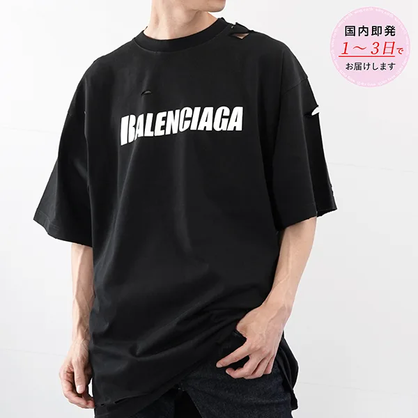 人気急上昇バレンシアガ ルーズフィット コピー DESTROYED Tシャツ 651795 ブラック¥13150円 -