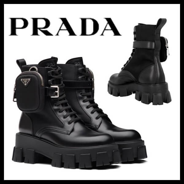 プラダ コンバットブーツ コピー ロゴ ブラッシュドレザー & ナイロン 2UE007FD0023L09F0002¥32790円 -
