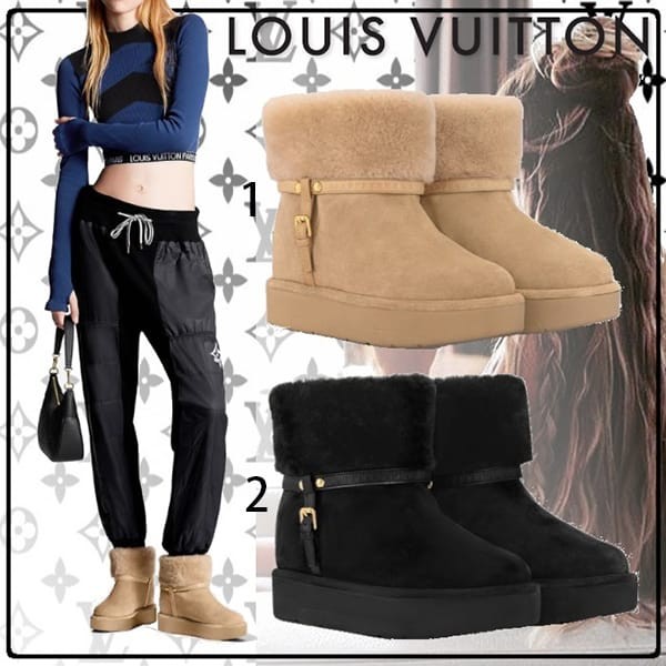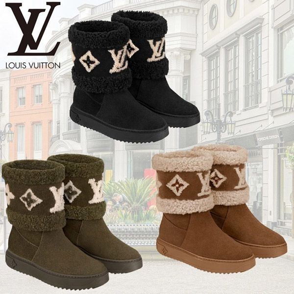 ムートンが可愛い ルイヴィトン偽物 Snowdrop レディース ムートン ブーツ もこもこ 黒 白 茶色 1A8D0U¥31800円 -