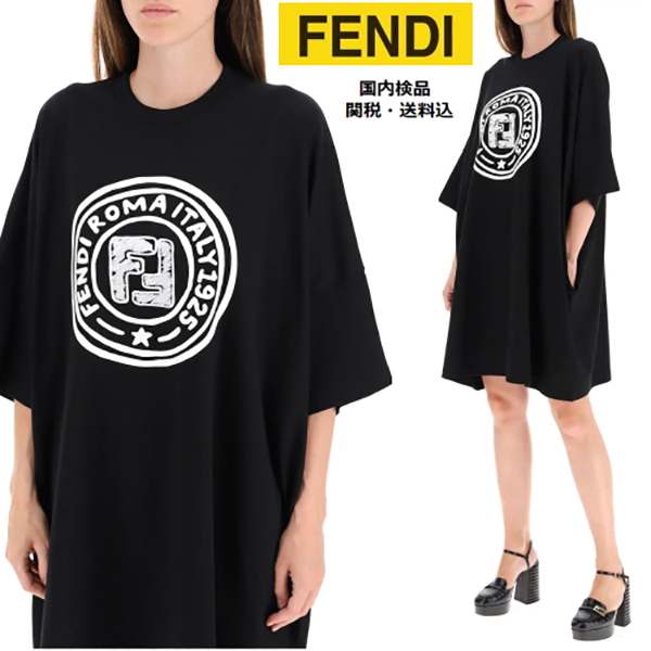 【フェンディ】フェンディ ROMA 偽物 コットンジャージー ロゴTシャツFS7254AC6BF0¥13500円 -
