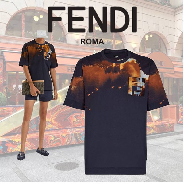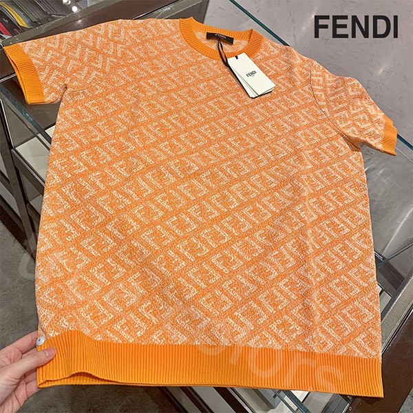 人気No1フェンディ イカット風FFモチーフ オレンジ 半袖Tシャツ 偽物 コットンニット FZX051AN3QF1KQV¥13800円 -