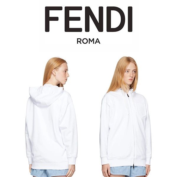 フェンディ ホワイト ロゴ ジップアップ偽物 フーディ21091307¥23200円 -