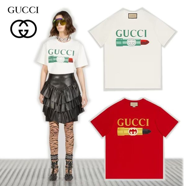 グッチ リップスティック 偽物 プリント コットン Tシャツ 717422 XJFHT¥12500円 -