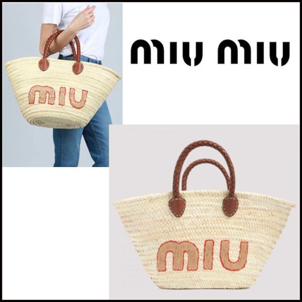 ミュウミュウ 偽物◆ロゴ ラフィアかごバッグ ストロートートバッグ¥30600円 -