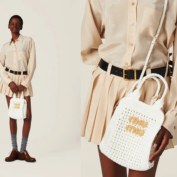 この上なく上品☆ミュウミュウ ラフィア クロシェファブリック トートバッグ 5BA283¥31150円 -