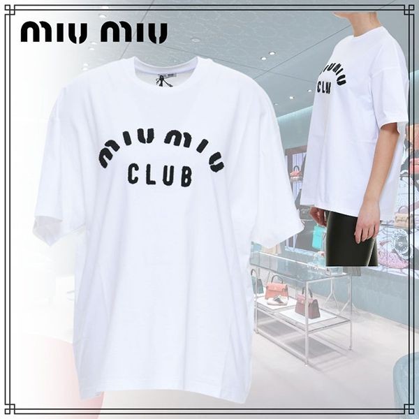 【関送込】ミュウミュウ CLUB LOGO Tシャツ コピーオーバーサイズ 刺繍ロゴ MJN3561QHTF0009¥11500円 -