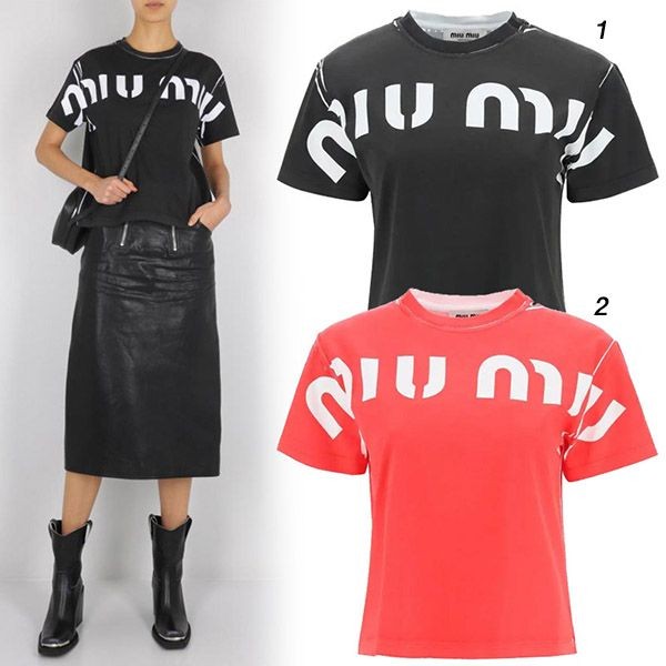 ミュウミュウ ロゴ コットンジャージー*Tシャツ コピー MJN483_14ER_F0124¥12300円 -