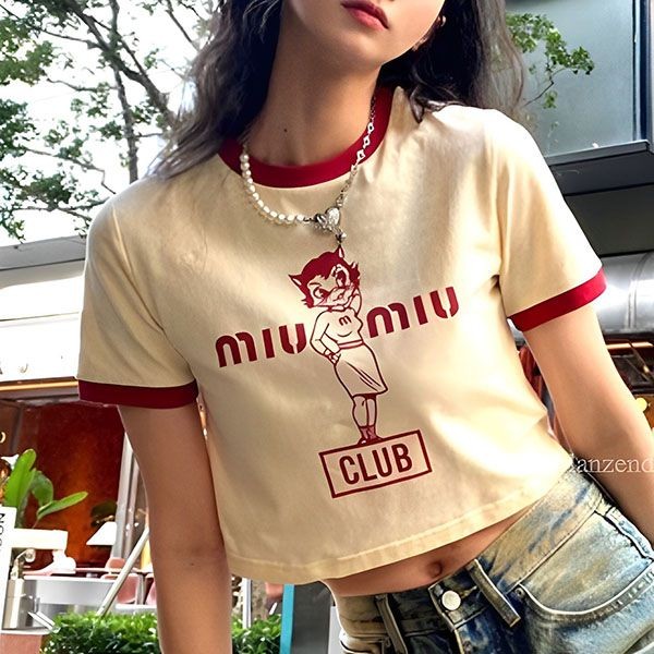 話題国内完売ミュウミュウ ロゴラベル クロップドTシャツ 偽物¥13500円 -
