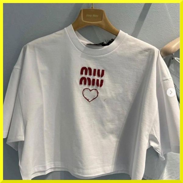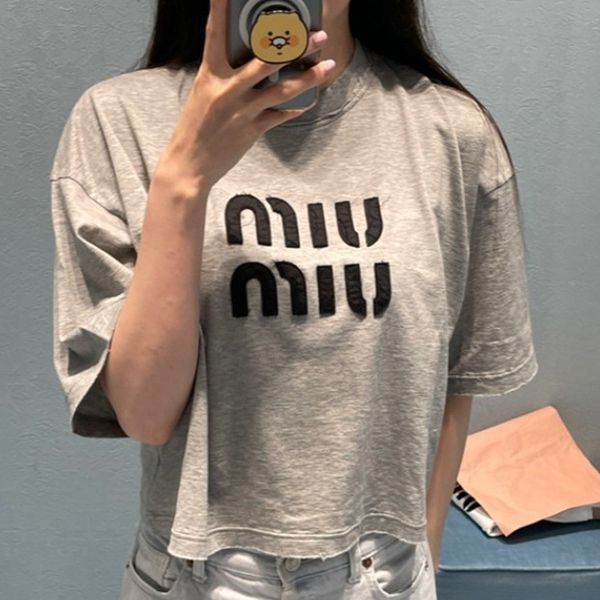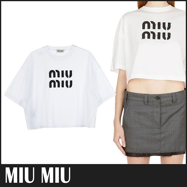 ミュウミュウ コットンジャージー クロップドヘム半袖Tシャツ 偽物 w23052002¥12300円 -