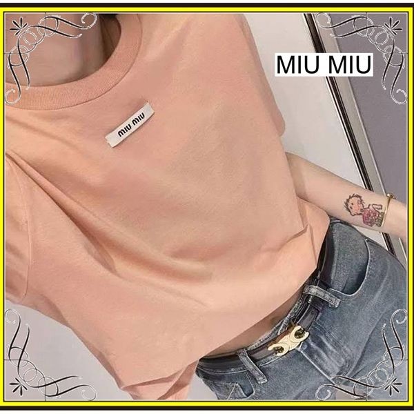 ★ミュウミュウ 偽物★ロゴ刺繍入り コットン 半袖Tシャツ03061¥13600円 -
