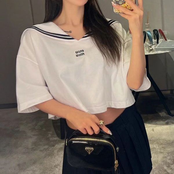 お洒落で可愛いミュウミュウ セーラーカラーコットンTシャツ 偽物 MJN461¥18800円 -