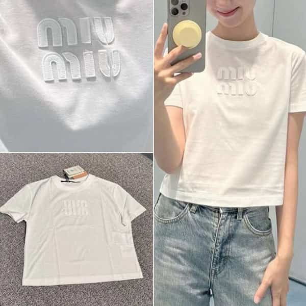 [優良店]ミュウミュウ エンボスロゴ入りホワイトコットンtシャツ mjn483¥12800円 -