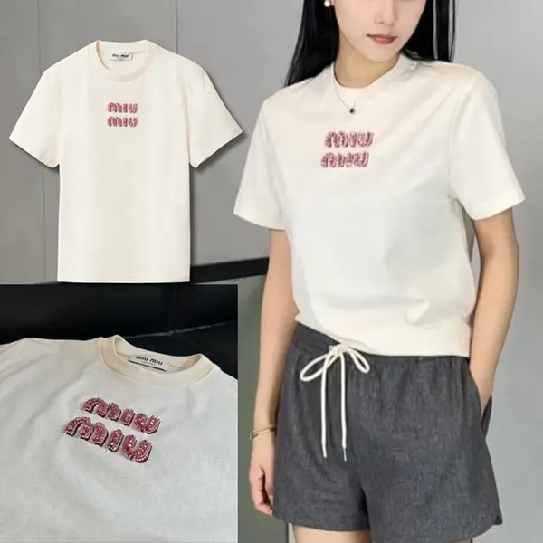 ミュウミュウ★偽物 装飾付 ジャージー TシャツMJN240_1XE1_F0009¥14260円 -