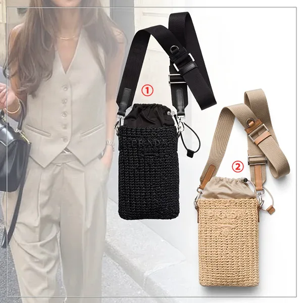プラダ◆ラフィア風クロッシェ スマホショルダー ロゴ pd25913¥18150円 -