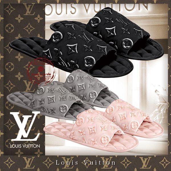 【人気】ルイヴィトン サンダル 偽物☆ルームシューズ サテン 刺繍 モノグラム 1A5SZB¥17600円 -
