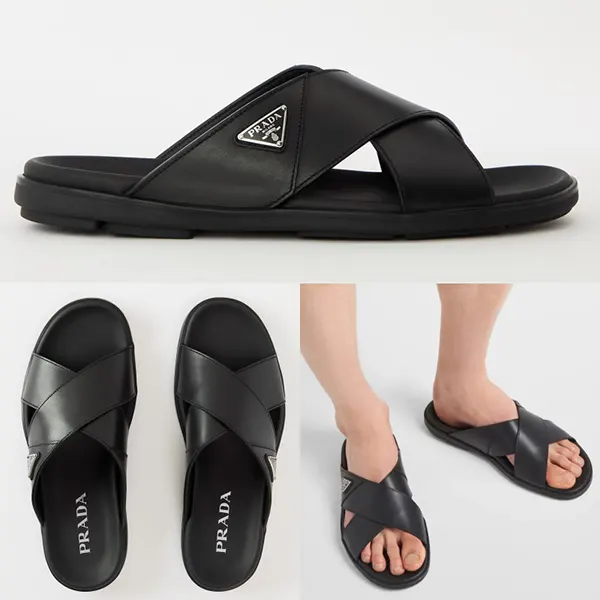 プラダ メンズ ロゴ レザー サンダル スライダー w25081302¥22350円 -